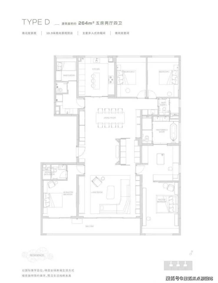 264为五房两厅四卫产品,更细腻的产品设计,超奢华四件套南向主卧,标准南向次主卧, 6.6米巨型方厅,纵向超长LDK一体化空间,专属家政保姆空间,超大容量收纳空间,令居住的尊贵从每处品质细节里流露而出,创造独一无二的奢享体验。