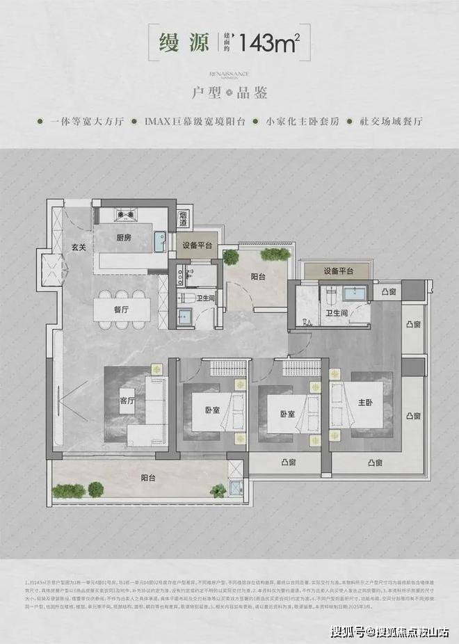 • 得房率:通过创新性的飘窗、双阳台改造、设备平台赠送等设计,实现平均94-96%的惊人得房率。