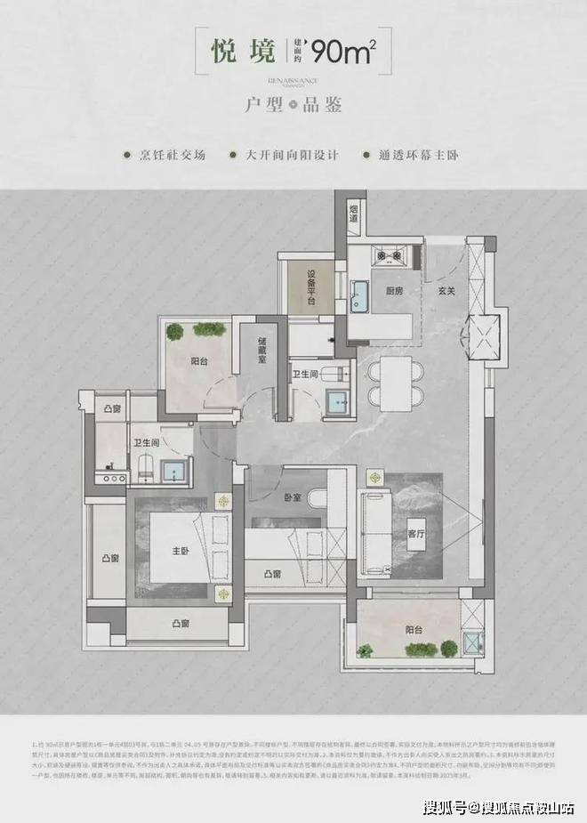 1. 空间优势:这两个户型以朝东为主,清晨阳光充足,空气清新。相较于90㎡三房,空间尺度更为宽敞,尤其是客厅和卧室的面积有所增加,居住舒适度进一步提升。