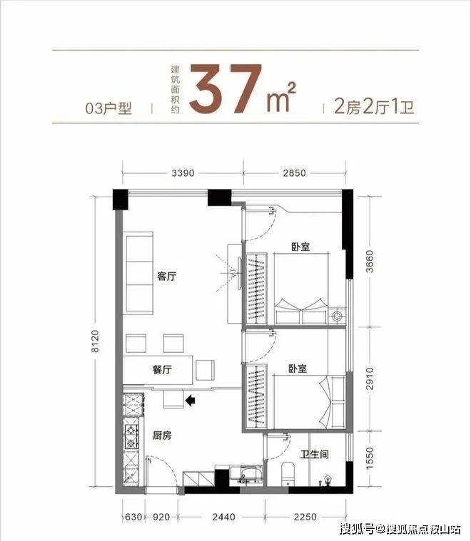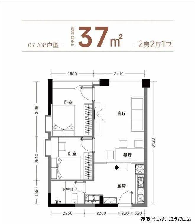 此次爆出的开发商一手保留单位,建筑面积约37平2房,实际套内使用面积约54/64平。