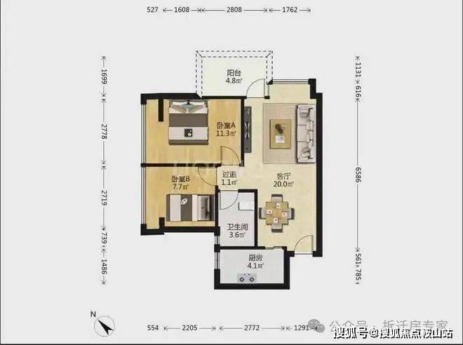 太古城南区62㎡的户型实际套内实用面积在51㎡左右,精致的小两房设计。