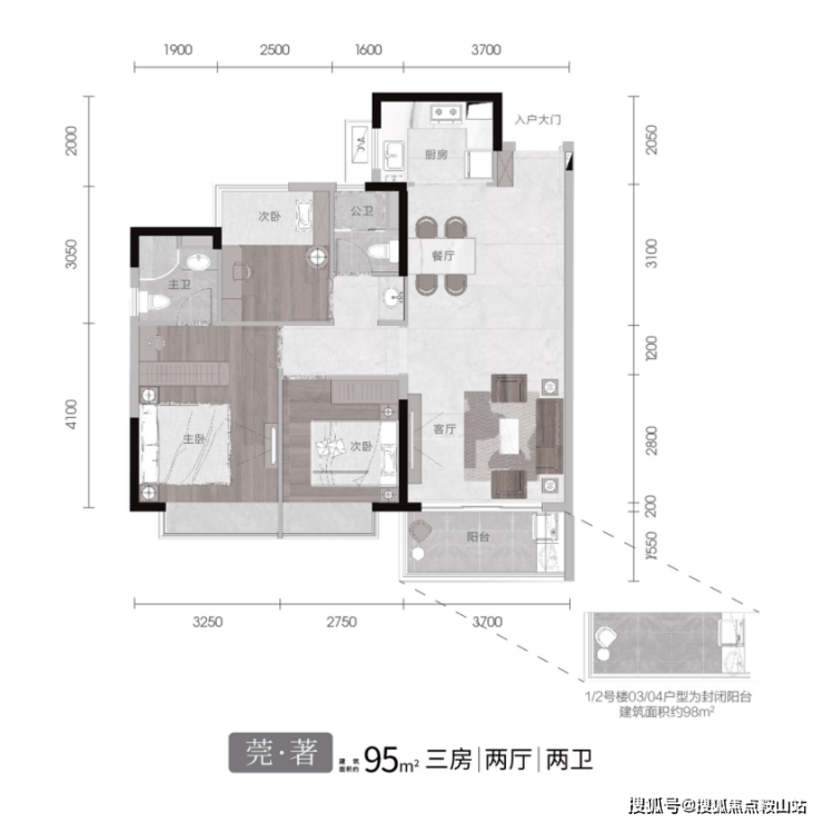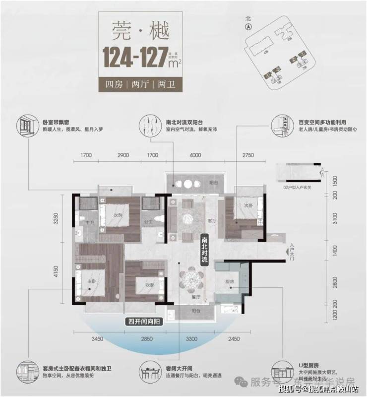 4、户型合理:户型设计兼顾实用与舒适,如 95㎡三房竖厅动静分区,125㎡四房双阳台南北对流。