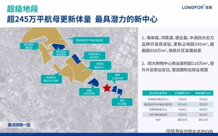 片区规划更新面积超245万㎡,建面超650万㎡,中洲、海岸、德业基、鸿荣源四大购物中心超110万㎡集中商业建面,定鼎深圳最大商圈