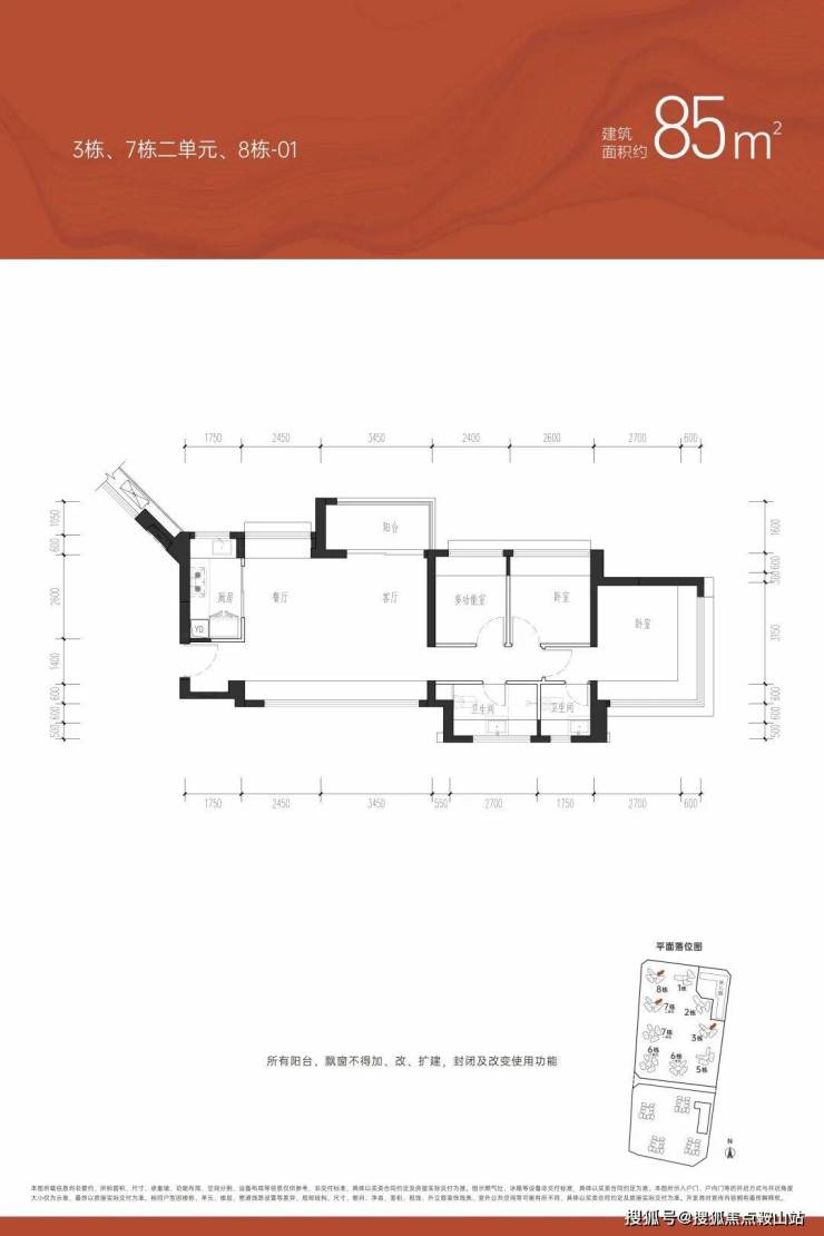| 约85㎡(横厅)三房两厅两卫【总价约415-455万】