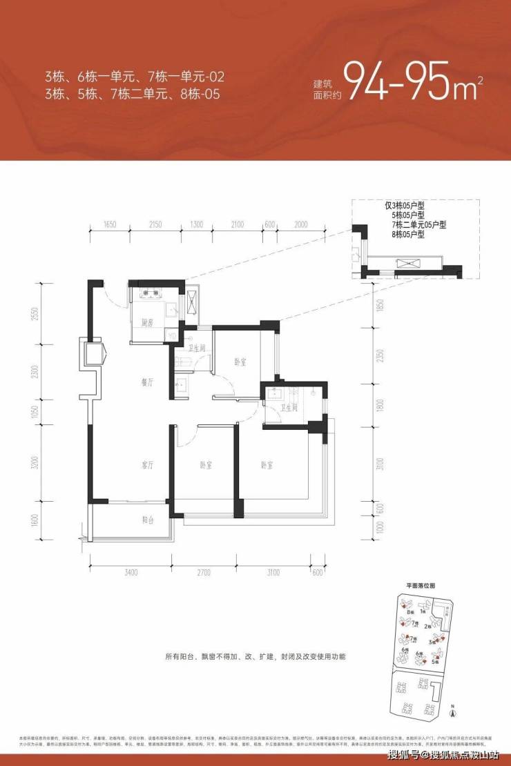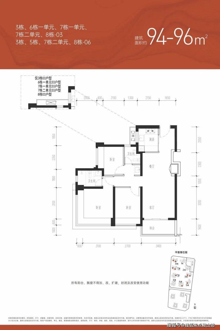 | 约94㎡(横厅)三房两厅两卫【总价约498-521万】