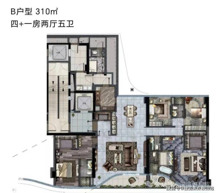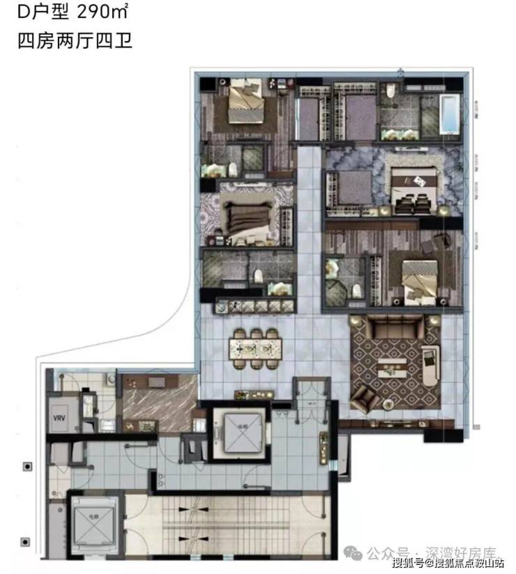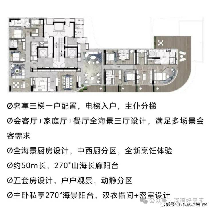 位于深圳蛇口太子湾核心,这座310㎡的N1-B户型天际大宅,以5房灵动格局承载家族起居与社交体面。中高楼层俯瞰一线海景,12米宽景阳台将深圳湾日出、邮轮航迹与滨海长廊日夜盛景尽收眼底,3.3米层高与全景落地窗引光入室,空间豁达从容。