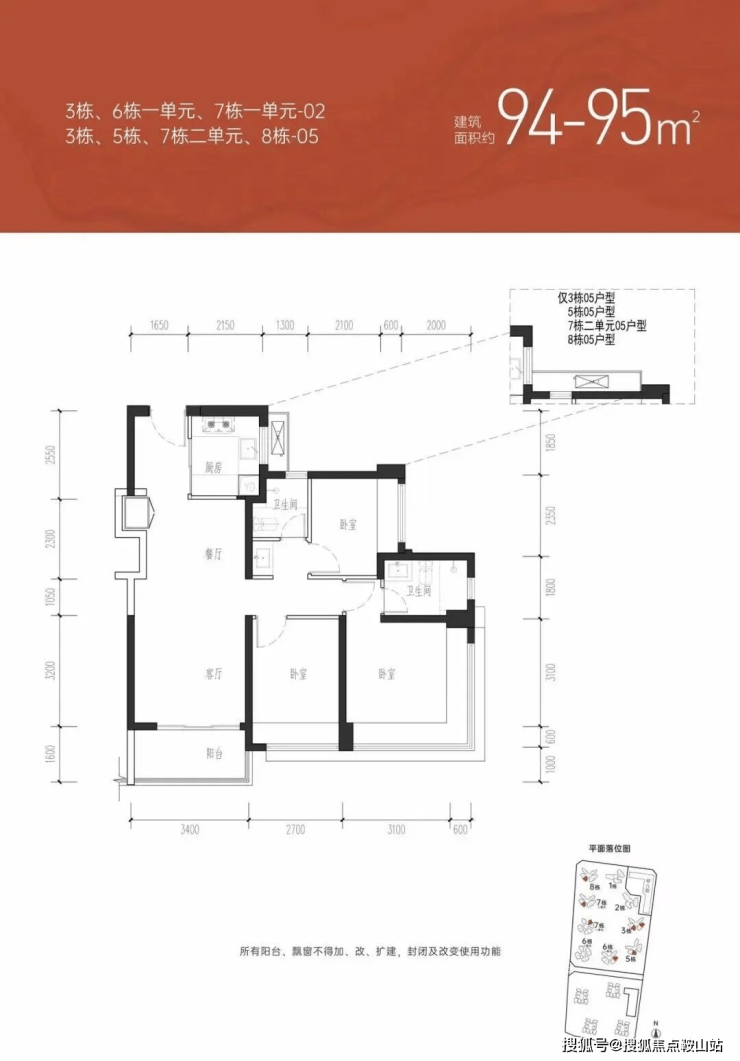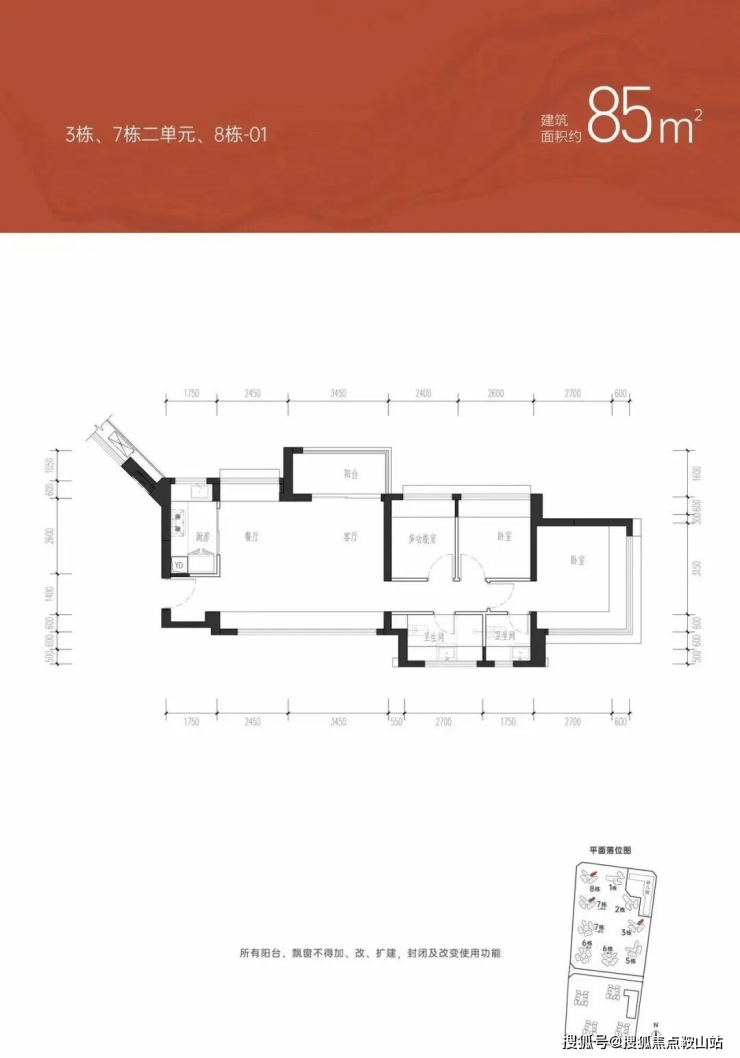 76㎡为最小户型三房一卫,85㎡的三房两卫,93-95㎡的三房两卫,150㎡的四房两卫,180㎡的五房三卫,目前全景样板房及交楼标准。