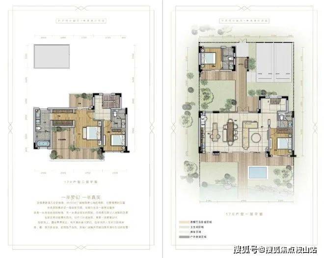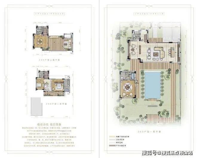 建面约130-170-260平合院墅,采用主附楼设计。
