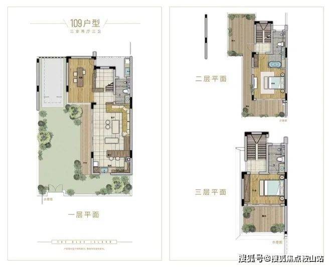 拥有3层空间,配备3间套间,每一层均可享受超大户外空间相连,将室外绿意,最大化引入室内。