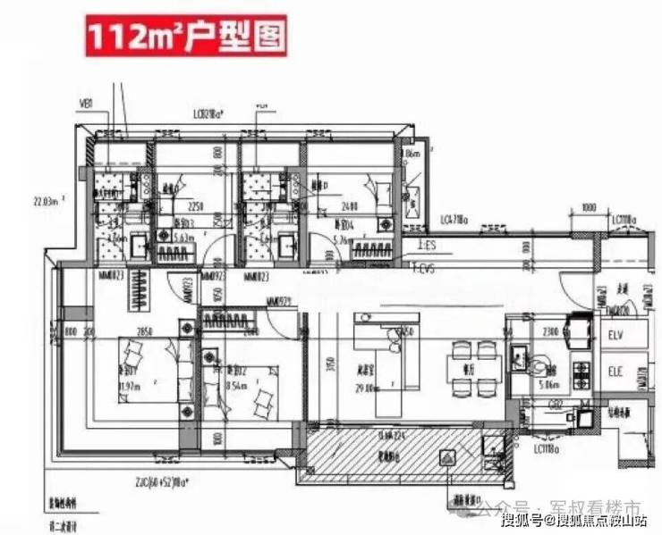 建面约112平方米户型:动静分区、生活区与休息区互不干扰,注重私密性,配备转角玄关,实现三面采光与南北通透。