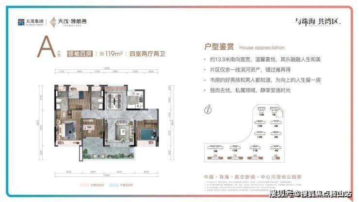 东临海岸线,尽享金湾情侣路的浪漫惬意;紧邻金湾中心河湿地公园,拥天然绿肺;府揽航空新城繁荣景象;坐享海、河、湿地、城四重景观。西部生态新城理想人居,享受高氧生态环境。