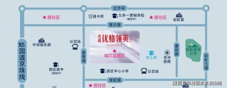 干道:依托彩虹片区翠景道以及翠沙道两条黄金动脉,贯穿整个彩虹片区东西向以及南北向,5-10分钟左右连接北外环路、博爱路、南外环路、105国道、沙古公路中山五大主干道,快速通达中山各片区,从项目出发,约20-30分钟无缝连接深中通道。
