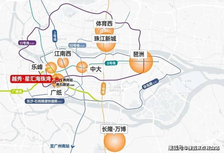 交通优势显著,三轨道环绕。广佛线燕岗站接驳广佛百万客流,为商铺带来大量潜在消费者;在建的环城线 11 号线横跨海珠、天河、越秀、白云和荔湾五大主城区,连接广州火车站、广州东站等大型交通枢纽,提升区域可达性与商业辐射范围。此外,全长 42.2 公里的环岛路贯穿广纸新城,规划集交通、景观、休闲、观光功能于一体,将吸引观光游玩的消费人群,为商铺带来更多商机。