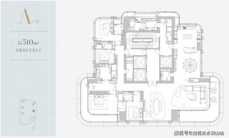 一层一户,纯粹顶豪,独享约510㎡的恢弘空间。