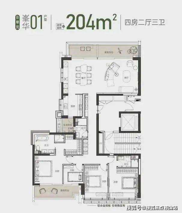 珑樾山建面约 204 ㎡ 01户型 4房2厅2卫