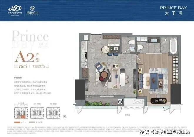 太子湾片区规划总建筑面积约170万㎡,总占地约69万㎡,汇集办公、居住、商业、艺术中心、酒店等多元业态。以“一湾三坊城中城”概念打造布局,在独一无二的太子湾滨海区,汲取山、海、城三大元素,构建高端“居住坊”、“商业坊”、“港务坊”。凭借独树一帜的规划与强大的枢纽功能,成就高端元素集萃纷呈的“城中之城。