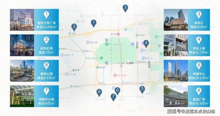 1公里范围内辐射卓悦汇+佐邻虹湾,家楼下商业链接华强+恒利地块超万平方,满足商务精英人士日常工作及休闲所需。