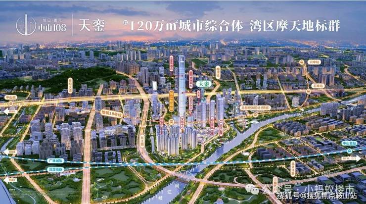 中山108项目,该盘规划为百万方综合体大城,集五星级酒店、服务型公寓、甲级写字楼、花园式立体商业街区、文化中心等多元配套于一体。