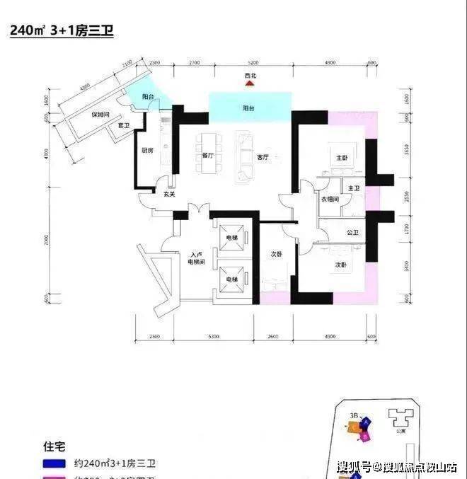 约240㎡3+1房3卫 A户型,西北朝向看名商和沙河高尔夫;