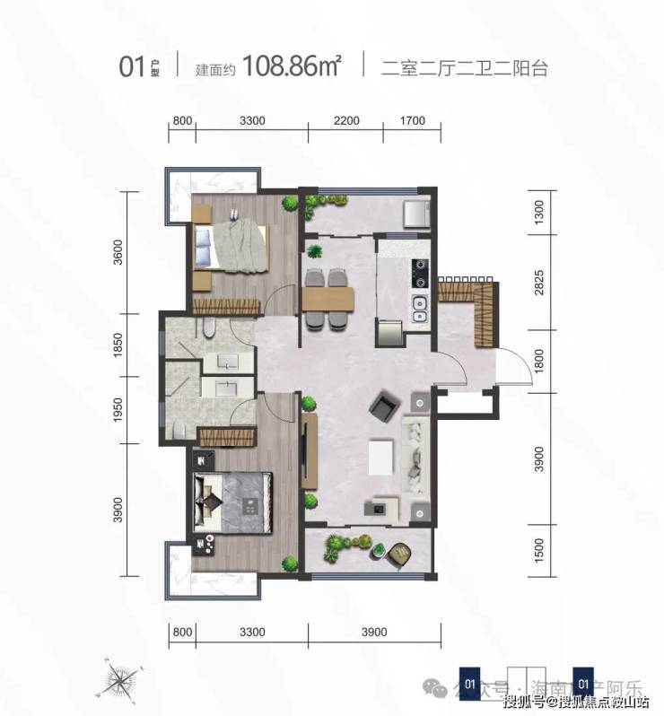 01户型丨建筑面积约108.86㎡