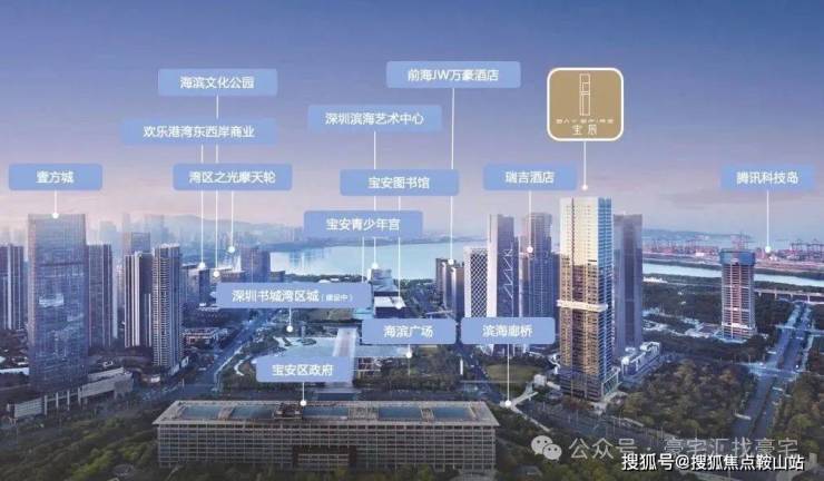 1号线宝安站上盖,3地铁+3高速+4港口+国际机场构建立体交通;壹方城、欢乐港湾等商业,深圳滨海艺术中心等人文配套,18公顷生态绿肺环伺,千亿资源现成即享。