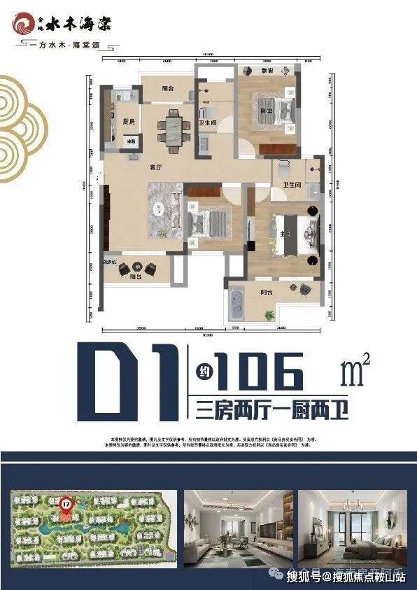 建筑面积约106㎡;3房 2厅 1厨 2卫 大阳台 入户泡池