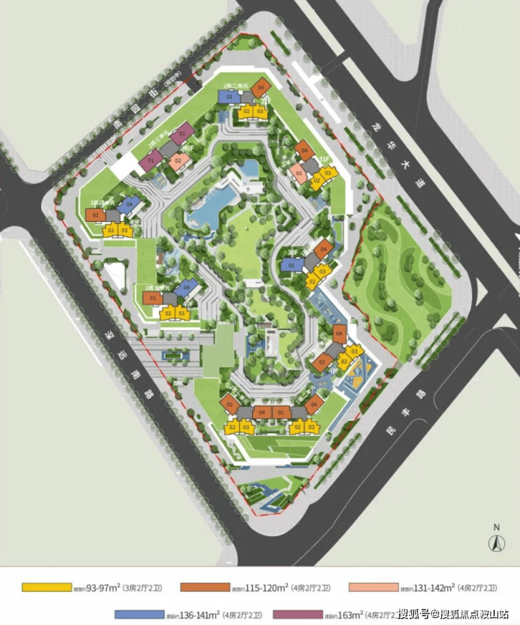 中洲迎玺园林效果图规划图来看三期同样规划有泳池