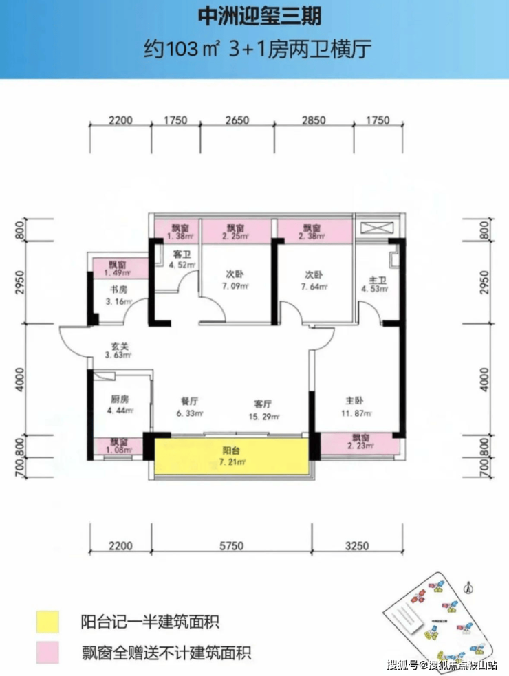 约110㎡:3+1房2卫,南北通透,灵动空间可作书房/多功能房;