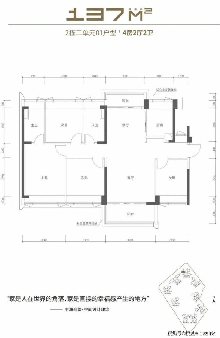 约140㎡:4房2卫,横厅+观景阳台,主卧套间尺度宽松,部分高层享北站公园/城市天际线视野。