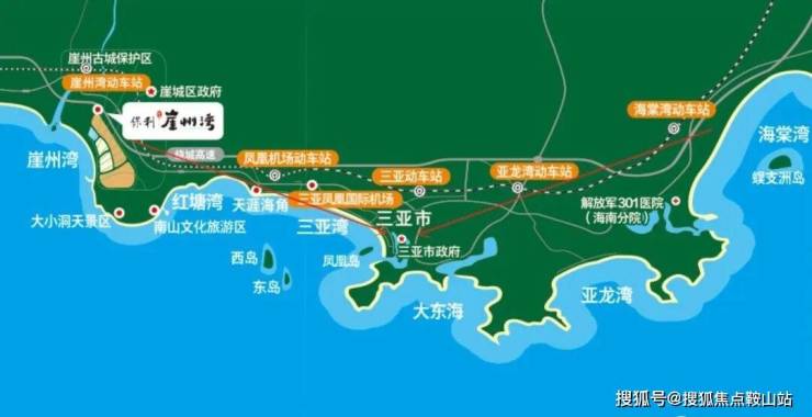 🚥交通配套:距离崖州高铁站3公里,距离凤凰机场26.5公里,南山货运港离4.5公里,中心渔港离项目5公里;
