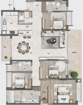 约200㎡四房两厅三卫:两套间设计、中西双厨,双阳台设计!