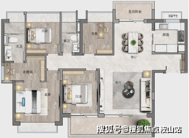 约180㎡四房两厅三卫:两套间设计、中西双厨,南北双阳台!