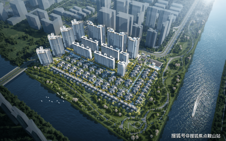 基于这样的自然优势,万科不是简单地将院子排布在水系旁,而是将院子设计成一个个簇拥在一起的“岛屿”,如同一个个岛屿环抱“水系”一样,有着环水岛居的意境。