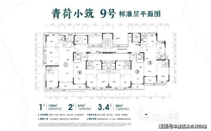 其中,约85㎡户型为3房设计,约120㎡户型为4房设计,三代同堂其乐融融。