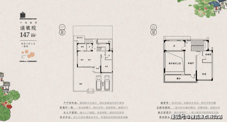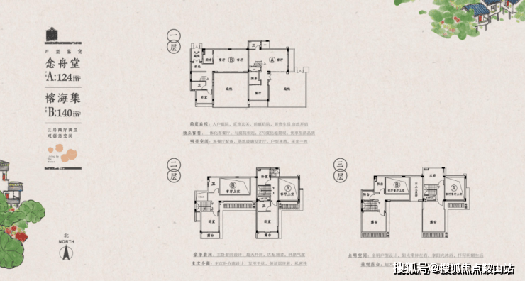 该户型区间为景区美墅,其中124㎡为念舟堂,140㎡为榕海,147㎡为渔歌院,部分户型尊享私家码头,随享竹海泛舟。设计了多创意空间,超高实用率,有天有地,尊享私家庭院。