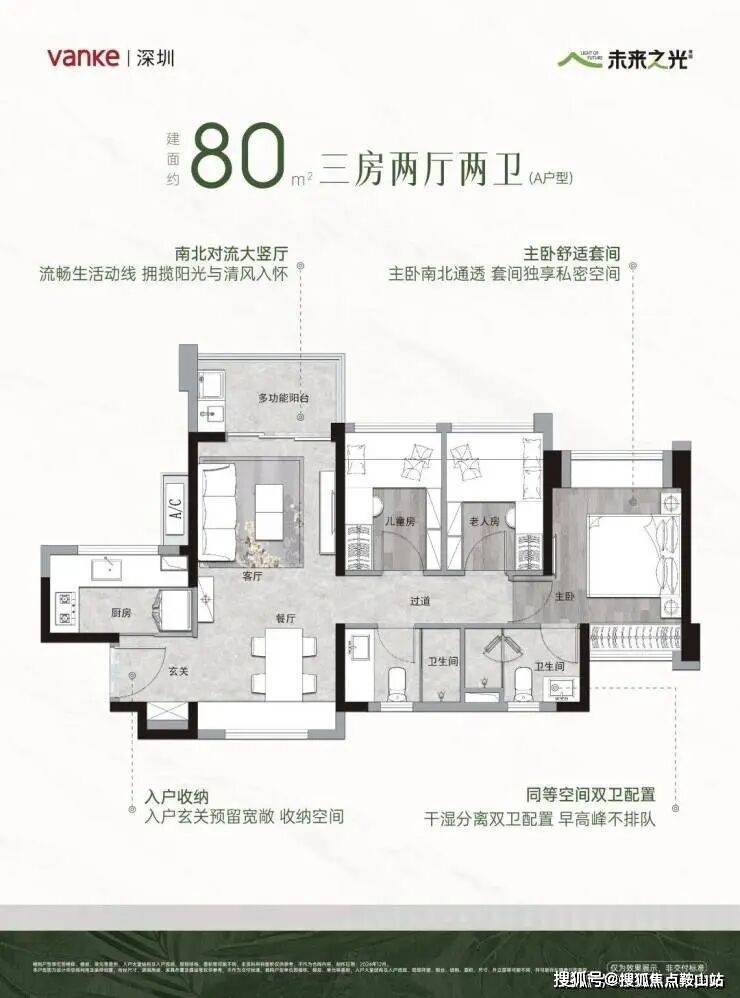 💎建面约80㎡A户型3房2卫