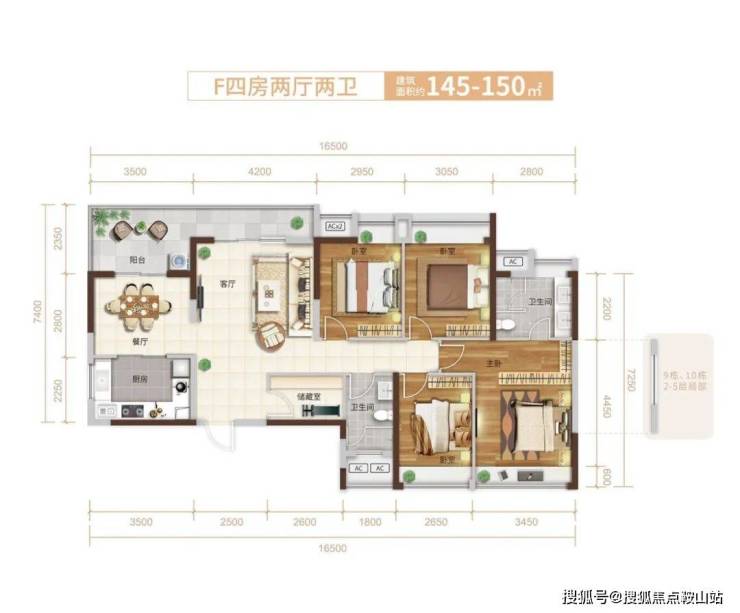 F户型:145-150㎡4房2厅2卫