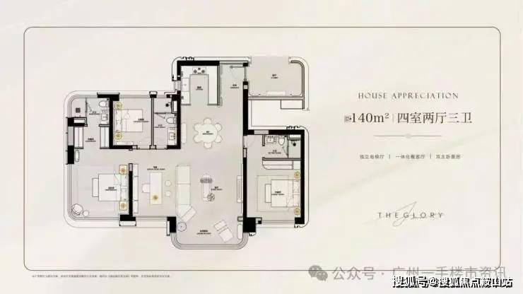保利天曜南北两地块的住宅规划有所不同,南地块规划建设7栋板式大平层住宅,户型为140㎡、175㎡、220㎡左右的四房;北地块则规划建设3栋40层以上的超高层住宅,户型为120㎡四房和90㎡三房。