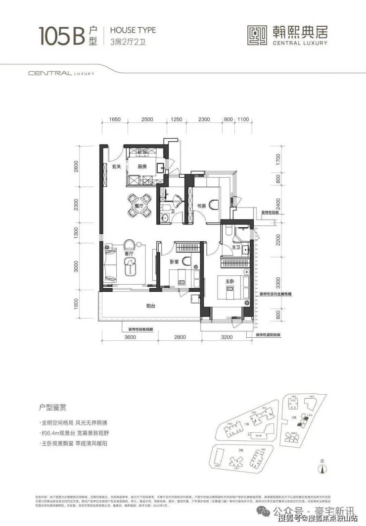 奢阔空间丨中心极境 礼献粤海 翰熙典居,粤海十年之后再上新,全新奢居综合体礼献峯层。可售主力户型新规后建面约105-140㎡奢雅空间,全明方正户型将空间奢阔感与生活舒适度完美契合。明星户型超6米阳台开间,全维度巨幕景观视野,尽揽湾心万千风景。