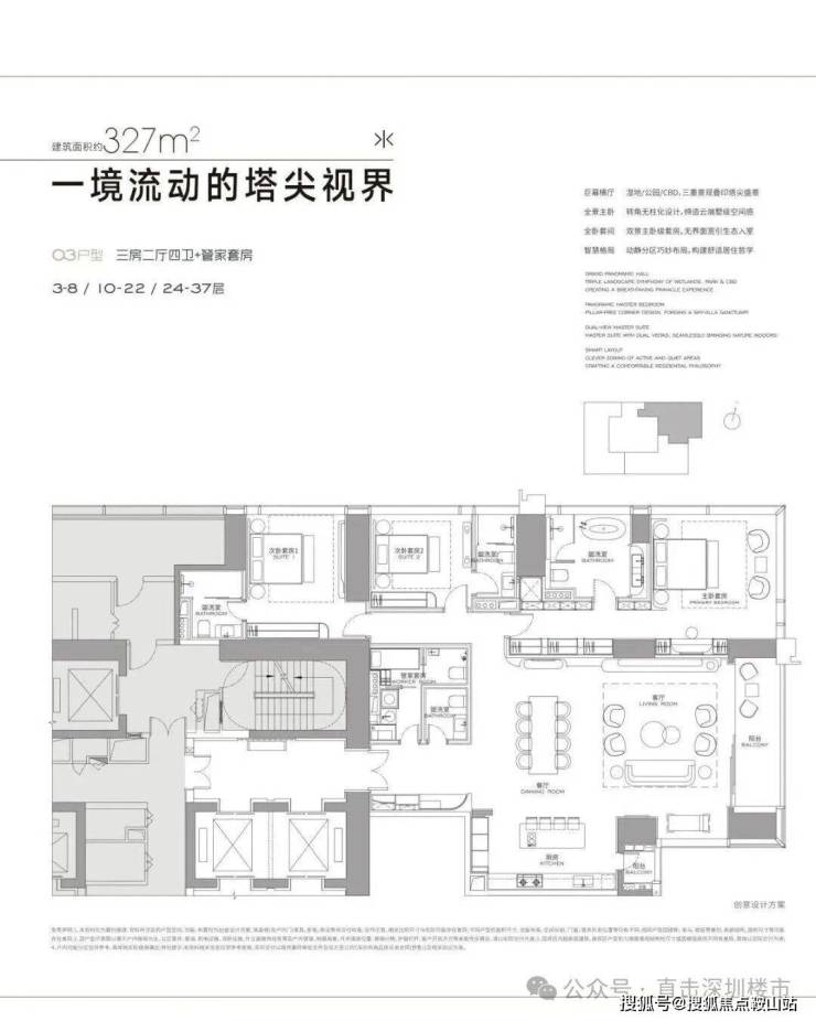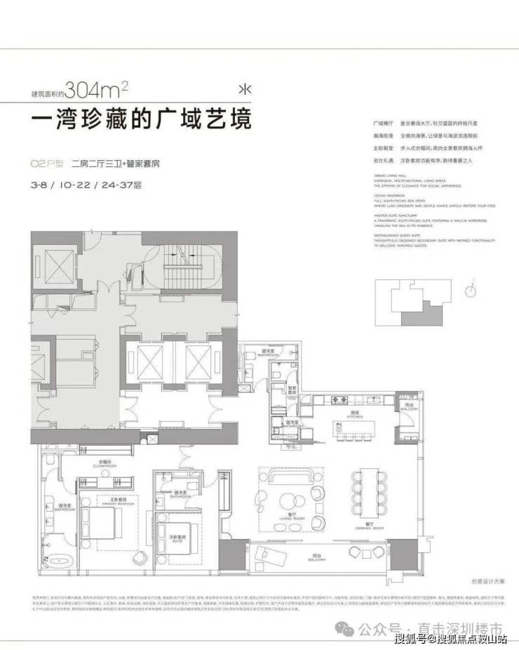 首推T3栋约123套面积304-327--402-570-1032㎡户型,304㎡做2房3卫+家政套间,327㎡做3房4卫+家政套间,402㎡做4房4卫+家政套间,500-1032㎡户型图暂未出来。