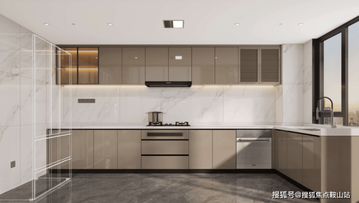 整个公区LDK一体化设计,拥有强社交属性,室内形成多重洄游动线,厨房不再是孤岛,可开可合的设计,直接连通客餐厅,不只是横向开间够大,进深也够长,约9米×6米的270°广角边厅,使用面积能够达到约50㎡,远超普通豪宅。