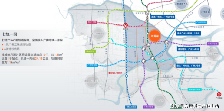 片区投入100亿打造广佛江珠城轨+6条地铁线路的轨道网络,链接广佛共享双城,1小时湾区畅行。