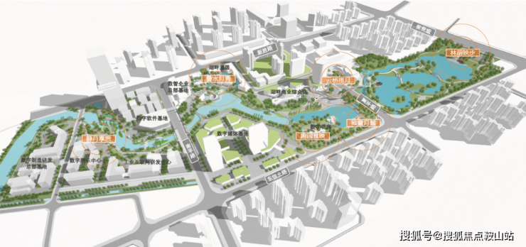2、一期公园已建成,面积13万方,二期建设“三馆一厅一中心”等市政文化配套,以及数字化总部基地。