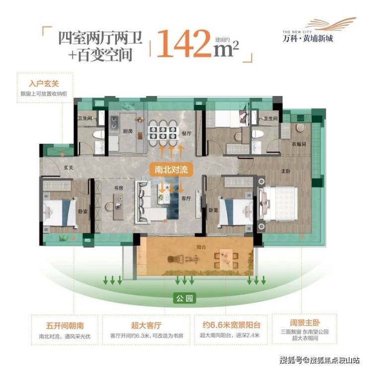 【户型】:规划建面约75-142㎡万科精装园景三四房