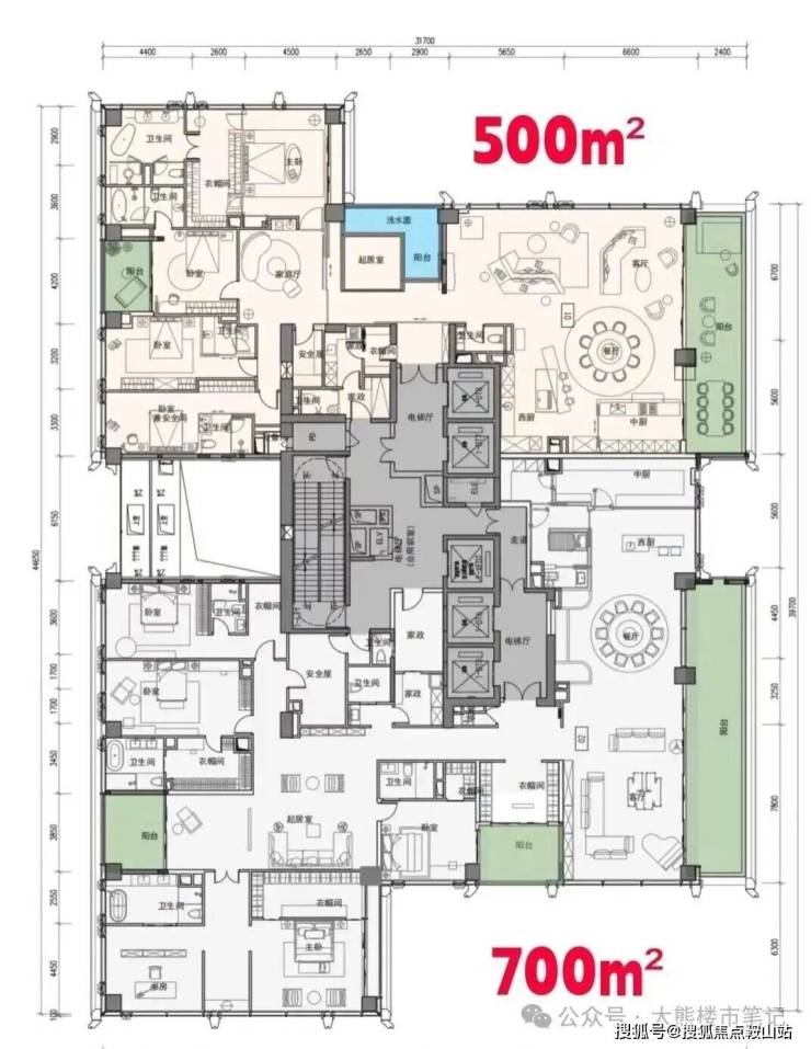 最后就是顶楼的1050㎡,堪称“空中别墅”。