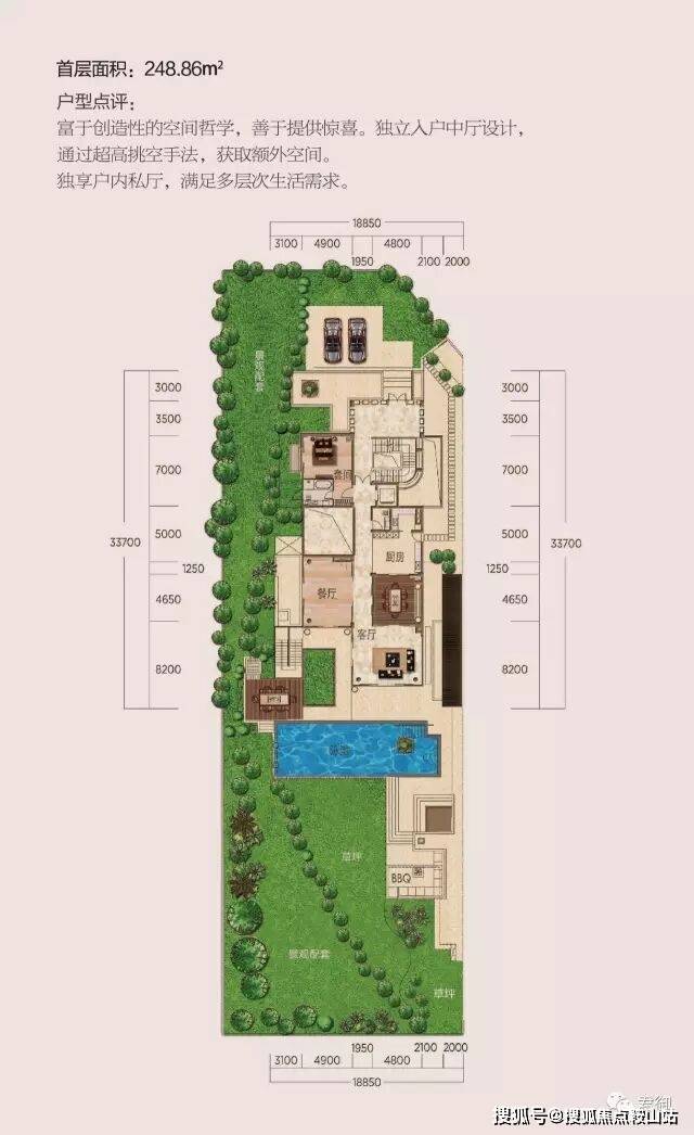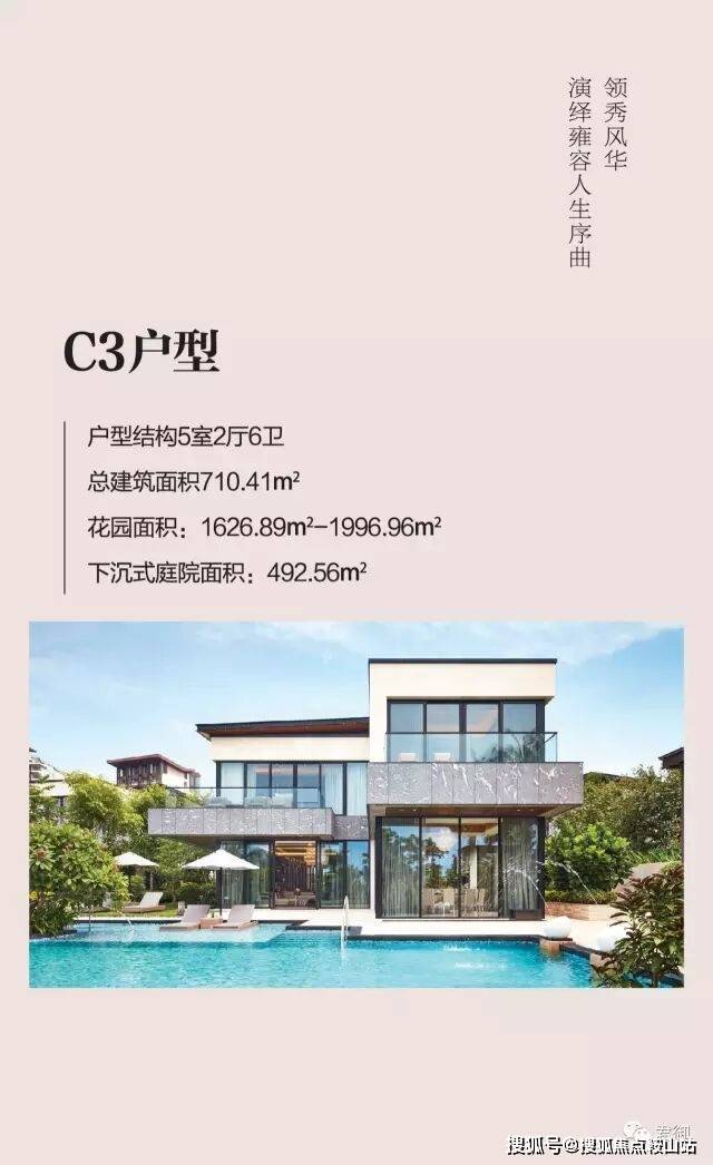 君御别墅独具匠心的户型设计以中式大宅中心天井为灵感,让热带花园与私家泳池成为别墅中心。宽阔舒适的生活空间环绕四周,让臻至生活情趣洋溢到每个角落。9种各具特色的户型满足各种生活商务需求,且栋栋配备无边际泳池、按摩浴池、桑拿房、下沉式庭院、采光天井以及双层入户门厅。
