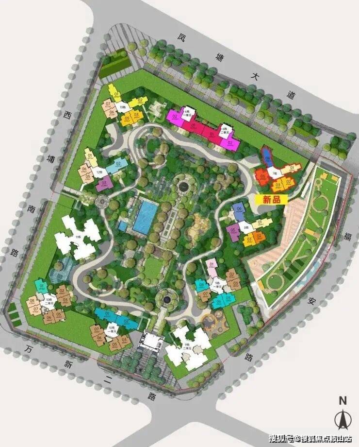 珈誉玖玺项目位于深圳宝安大道与凤塘大道交汇处,总建面约40.53万㎡,规划有10栋31-48层的高层、超高层住宅,总户数2479户。户型包括约75-97㎡的3房、约110-199㎡的4房等类型。
