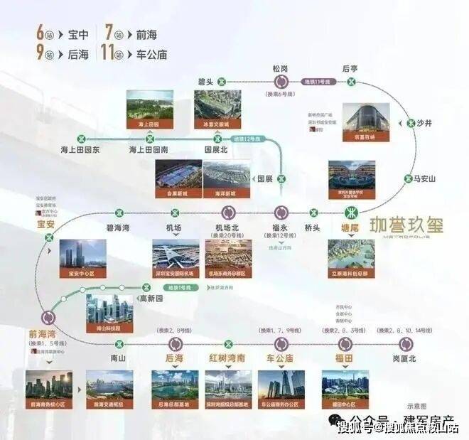 交通配套:步行可达的是地铁11号线塘尾站,衡量地铁配套的价值,不能只看通勤距离,还得考虑线路串联的城市资源,11号线沿途站点都是城市地标级的综合配套,可实现6站到宝中,7站到前海,9站到深圳湾后海,11站到车公庙的快速轨道通行,可以说是“全城精华,一轨直达”。