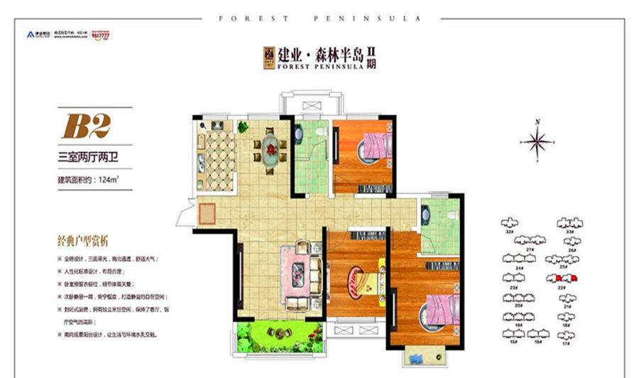汤阴·森林半岛是建业在河南省开发的第21座建业森林半岛,它延伸了森林半岛系列产品成功的开发经验,并进行因地制宜的改进创新。建业森林半岛二期,总建设用地面积为60639.30㎡,其中,总建筑面积149637.36㎡,项目建筑包括多层洋房、高层住宅、配套商业与服务设施。整个社区以低的容积率、低的建筑高度、低的建筑密度和高绿化率、高品质、高舒适度形成接近自然的建筑形态;以高层环抱洋房式设计理念、坐北朝南的空间格局进行规划,打造出大气、正气与贵气的高档住宅小区。 在森林半岛二期整体规划上,采用“两个中心,两条轴线”的规划结构,通过小区中心景观的打造,以环形道路贯穿几个居住组团,整个小区东西与南北的空间层层递进,庄重贵气,既远离道路噪声和灰尘污染,形成移步异景的森林式景观格局,又契合中国传统风水学原理,做到“蓄气、藏风、得水”。另外,在建筑排布上,形成半开放的组团布局,以庭院式的建筑围合,形成院落之间的彼此独立与相互渗透,同时,景观和朝向兼顾的建筑平面布局型式,有利于通过板与点式住宅的组合,创造丰富的居住空间,有效避免行列式布局可能带来的单调与沉闷,形成丰富的社区空间层次。 建业·森林半岛,紧邻3150亩汤河公园高级湿地公园带,占据汤阴高级生态资源和独特的湿地景观,真正属于城市上风上水的宝地。亲水休闲游憩区以丰富的滨水活动为主题,设计了大面积的水面,让游人从视线上达到一个佳感受。结合大型的水面,设计梦想沙滩及各种沙滩设施来吸引游人,沙滩在夕阳的映衬下形成一种“金沙夕照”的浪漫景观。结合梦想沙滩设置了园区服务中心、游船码头及商业餐饮等为市民提供了一个亲水游乐的场所。在梦想沙滩对岸,以一条滨水景观带和下沉广场等空间形成一处“水岸人生”的市民舞台,为游人提供聚会、表演、休闲的亲水活动空间。同时还融入了剪纸、帷子舞、烙画等具有汤阴特色的民俗文化小品来展现汤阴的民俗文化。