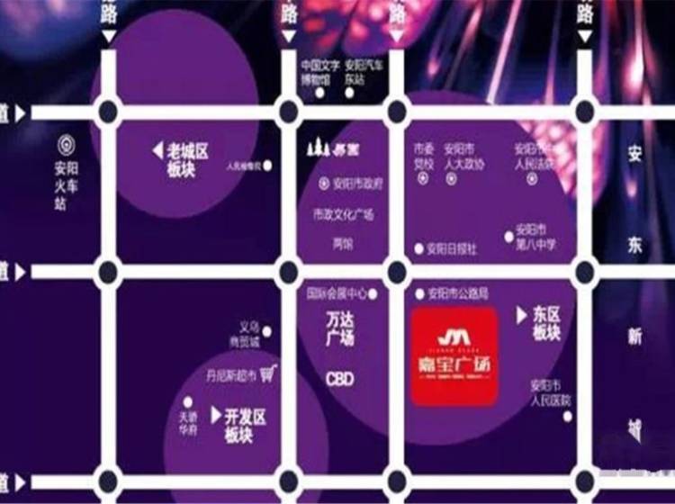 嘉宝广场位于安阳市文明大道与永明路交会处南100米路东(万达广场东侧),总建筑面积约18万平方米,集国际高端商业、精品住宅和创意SOHO等众多现代化商业和居住建筑形态于一体的超大型、国际级城市综合体。 嘉宝广场住宅“美和天著”,采取国际ArtDeco风格的建筑风格,90-180平米精品户型。五星级创意SOHO,全能空间,宜商、宜居、宜办公;精品商业,大牌云集,紧邻万达广场旁,人流财富聚集地。嘉宝广场实力巨献,雄踞安阳少有中心钻石地段,势必打造安阳东区少有的城市综合体。